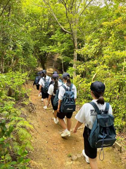 先頭の班長が後ろを歩く班員に声をかけながら歩きます。