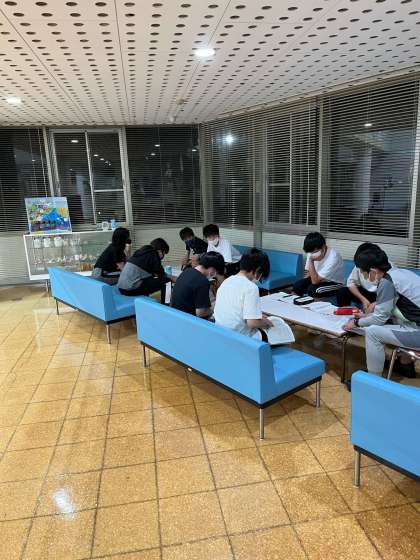 入浴の時間に室長会議を行っています。今日の反省から明日の連絡まで、先生から聞いたことを班員に伝えます。