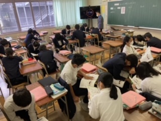 ?2年生では、道徳の授業が行われてれていました。道徳は、自己の生き方を考え,主体的な判断の下に行動し, 自立した一人の人間として他者と共によりよく生きるための基盤となる道徳性を 養うことを目標としています。