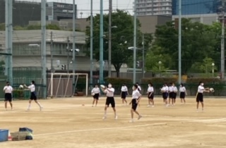 3年生の女子体育の授業では、「タグラグビー」に取り組んでいました。慣れない楕円球に戸惑いながらも、スクリューパスに挑戦していました。