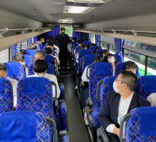 バスの車内では、事前に制作したラジオ番組を聴いたり、マナーを守って思い思いに過ごしています。