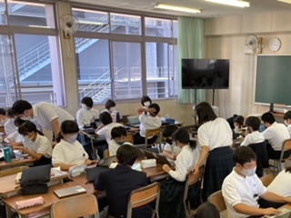 1年生は自然体験学習のまとめ、2年生はキャリア学習に取り組んでいました。