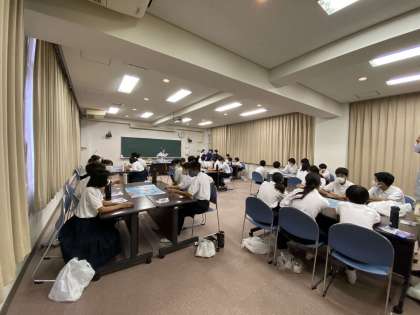 今日は、大阪市立デザイン教育研究所と生徒会が主となって、謎解き「まどろみの海へようこそ」が開催されました。今まで関わることのなかった学年やクラスの子たちと、6人1班になり様々なタイトルに合わせたゲームに取り組みました。ゲームをクリアすれば、お宝がゲットできるということもあり、生徒たちはたくさんコミュニケーションを図りながら力を合わせて頑張っていました。