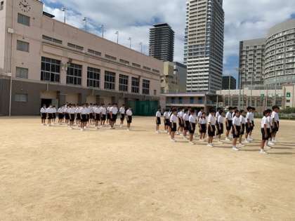 暑い日差しの中にも爽やかさを感じる気候の中で、2年生、3年生の行進練習が始まっていました。
