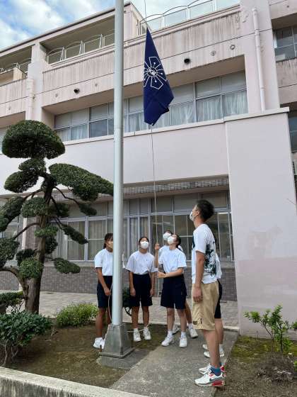 体育大会まであと10日です。放課後に生徒係打ち合わせを行いました。委員会生徒が中心になり、体育大会の様々な役割を担っています。グランドでは実際の動きの確認もしました。明日は第二回の全体練習です。天気が気になりますが本番に向けての準備が着々と進められています。