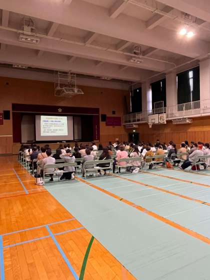 今日の放課後は体育館で三年生の保護者を対象とした第二回進路説明会を実施しました。今回は間近に迫ってきた進路選択について、スケジュールや準備する書類など、より具体的なお話でした。来月には第一回の進路懇談があります。進路についてご質問等がありましたら、遠慮なく中学校までお問い合わせください。