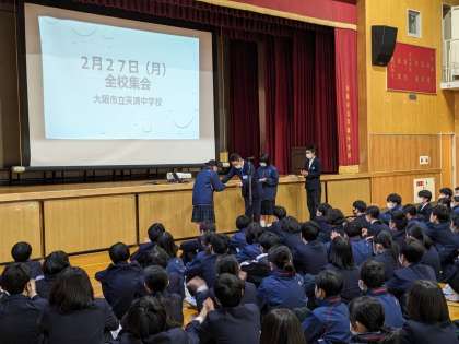 そして、市長表彰もありました。同じ学校の仲間が表彰されることは、非常に嬉しいことですね。もうすぐ2月、体調管理をしかっりして3月を迎えましょう。