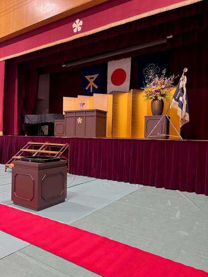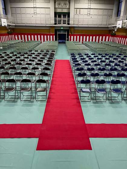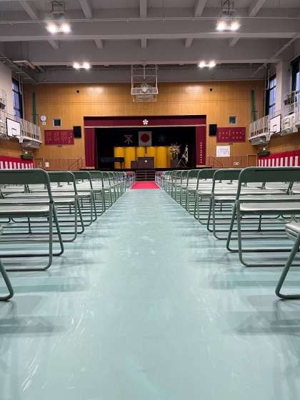 明日のご参列につきまして、入場は9時30分からです。卒業生の入場は9時55分ですので、それまでにご入場いただきますようよろしくお願いいたします。