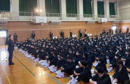 前期生徒会の認証式や新着任の教職員の紹介、学年担当の先生方や職員の方々の紹介がありました。