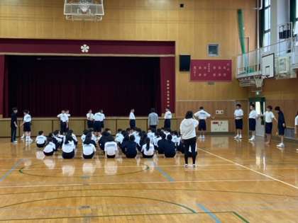 体育の授業では、集団行動の授業が行われていました。