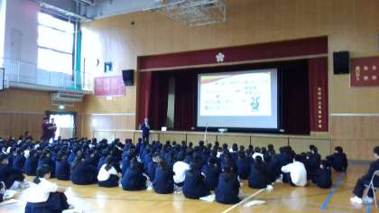 全校集会で、いじめ・いのちについて考える取り組みをしました。