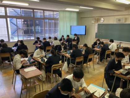 教室では、一人一台端末を使って、プログラミングの学習に熱心に取り組んでいました。