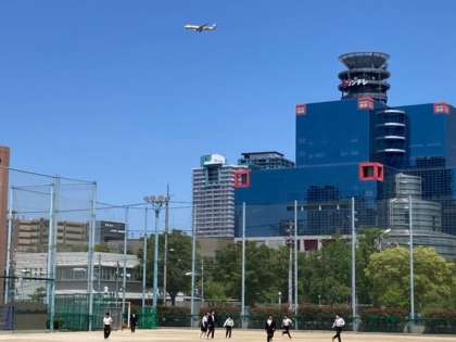 お昼休みには、晴天の下、男女仲良くボール遊びに興じていました。