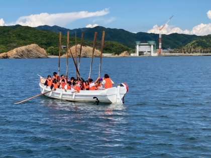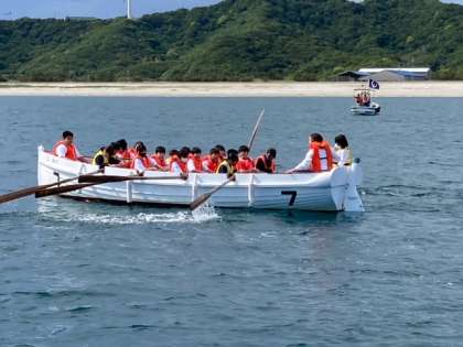 カッター訓練では、各艇で声を掛け合いながら漕いでいました。通信係も海上での指示を上手く連携していました。