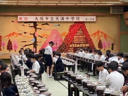 先ほどの体験活動で、バームクーヘンやソーセージ、魚などを食べたあとにもかかわらず、生徒たちはモリモリ食べていました。