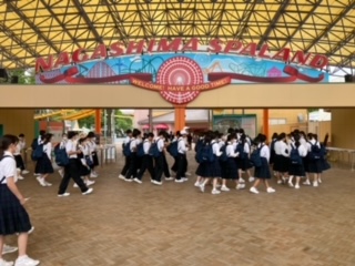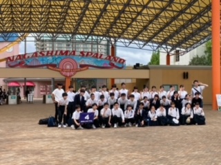 待ちに待った長島スパーランドに到着し、学級写真を撮って、早速班別に人気のアトラクションめがけて入場しました。