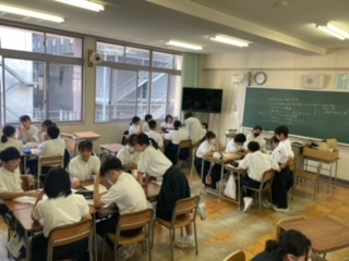 本日6限目に、1年生はあらかじめ示された「知識」「夢」「仲間」などから「大切なものランキング」について、グループで活発に意見交流をしていました。