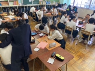 3年生では、修学旅行の振り返りに取り組んでいました。