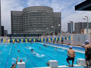 小暑を迎えた本日、屋上のプールでは、水泳の授業が行われ、生徒たちは気持ちよさそうに泳いでいました。