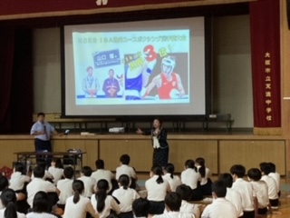 3年生では生徒向けに、公立、私立の4校の高校説明会が行われました。それぞれの高校の特色を高校の先生方から直接ご説明いただき、質疑応答も積極的に行われていました。