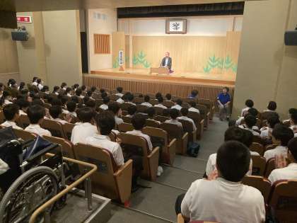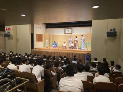 本日、1年生は北区にある繫昌亭にて、落語鑑賞を行いました。実際の舞台で体験も行わせていただきました。初めて落語を鑑賞する生徒も多く、みんな楽しく鑑賞しておりました。