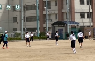 暑さもやわらいだグランドでは、ソフトボールの授業が行われていました。