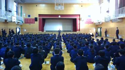 今日は2学期の終業式です。明日から冬休みが始まり、新年が迎えようとしています。終業式では、表彰の伝達、校長先生や生活指導の先生からは冬休みの過ごし方について、生徒会からは学校生活向上のためのアンケートを取ってもらえるよう提案がありました。