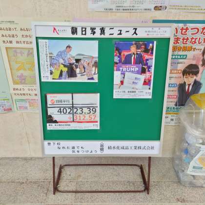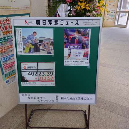 本校の正面玄関にあります、「朝日写真ニュース専用掲示板」に掲示する朝日写真ニュースを「積水化成品工業(株)}様より今年度も寄贈していただきます。ありがとうございます。