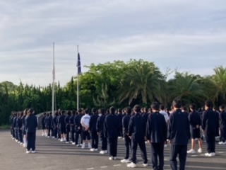 本日も天候に恵まれ、朝のつどいが行われました。