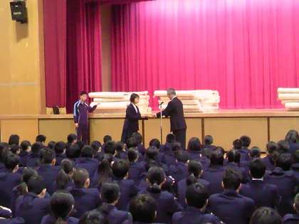 女子バレーボール部、野球部、吹奏楽部がそれぞれ各ブロック等での活躍に関して表彰されました。