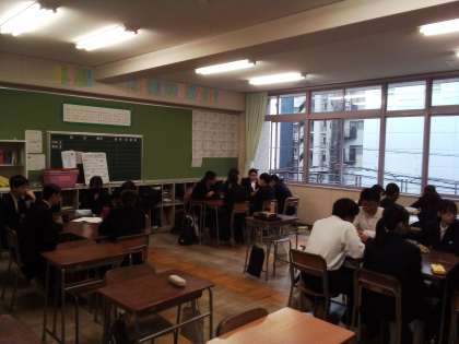 全校集会で、「わたしのせいじゃない」という絵本を読み、学級に戻ってからは、グループに分かれて話し合いを行いました。