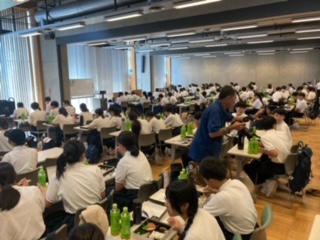 快適な環境で全員そろって修学旅行最後の食事をとりました。この後は、班ごとに各エリアの見学に行きます。