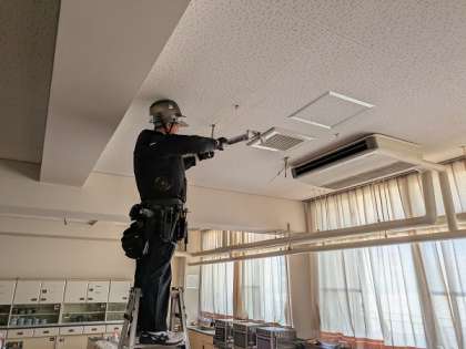 本日より校内LED工事が始まりました。2学期より校内の蛍光灯が全てLEDに変わります。2学期からの楽しみにしておいてください。