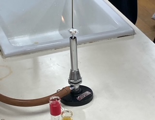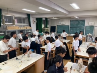 ガスバーナーを慎重に取り扱いながら、グループで対話して意見をまとめていました。