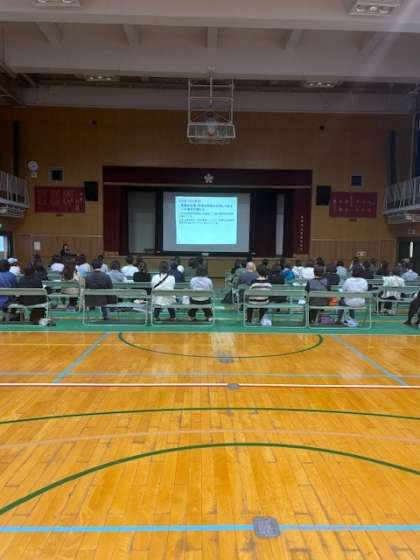 本日の放課後、体育館で三年生の保護者を対象とした第二回進路説明会を実施しました。今回は間近に迫ってきた進路選択について、スケジュールや準備する書類など、より具体的なお話でした。来月には、進路懇談があります。進路についてご質問等がありましたら、中学校までお問い合わせください。