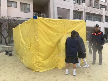 1年生は「防災について&緊急トイレの作成」、2年生は「心肺蘇生法について」、3年生は「消火訓練&地震体験&煙訓練」でした。震災が起きたとき、地域で頼りになるのは君たちです。知識を身につけるだけでなく、すぐに行動できるようにしておきましょう。