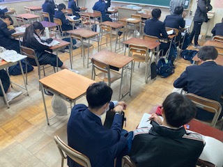 本日、学習会が行われ、50名近くの受験生たちが自学自習に真剣に取り組んでいました。
