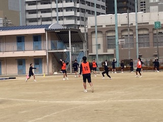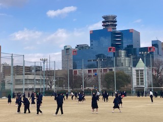 お昼休みには、多くの生徒たちがグランドでボール遊びに興じてました。下級生も上級生に遠慮することなく、のびのびと楽しんでいました。