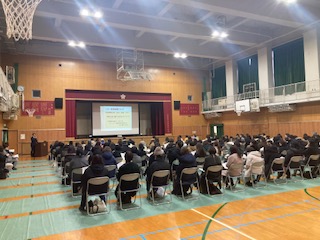 16時からは、新入生保護者説明会が開催され、多くの保護者の皆さまにお越しいただきました。持ち物や服装のルール、給食のことや事務の手続きなどの説明がありました。新年度に向けての準備が少しずつ進んでいます。