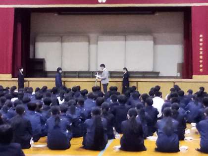 今日で3学年そろっての集会は最後となりました。3年生は一般選抜入試、卒業式まで残りわずかです。一日一日を大切に過ごしていきましょう。