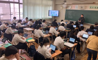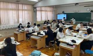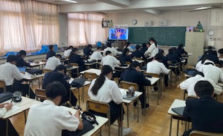 3年生の美術の授業では、「ありえない世界」をテーマに下書きに取り組んでいました。パソコンを使ってヒントを探している生徒もいました。