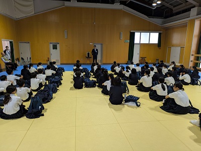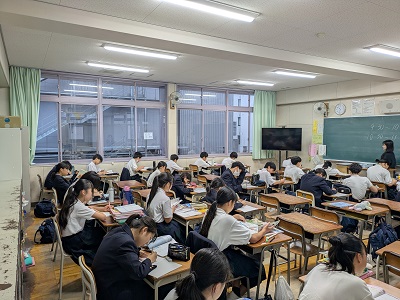 1年生にとっては初めてのテスト前土曜学習会が開催されています。1年生は、5/15(木)・16(金)と一泊移住に行っていますが、本日、60名の参加となっています。今回は、開校式を行い学習会の意義を知り、学習に挑んでいます。