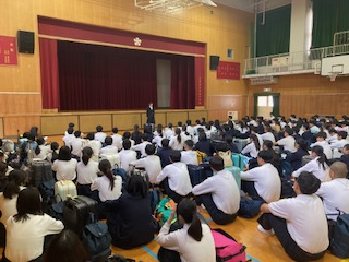 天気もおおむね良好の予報です。出発式では生徒の代表から修学旅行中の注意事項や心掛けについて言葉がありました。