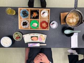 朝食が始まりました。普段あまり口にすることがないおかずの数々ですが、いただきますから、数分でおかわりする生徒たちもいました。