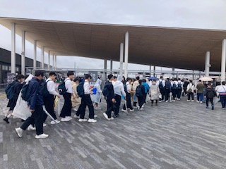 帰る頃になり、日が差してきました。東ゲートをくぐり、学校へ向かいます。