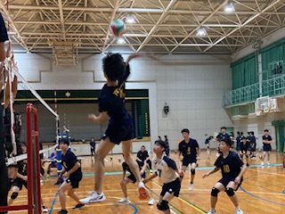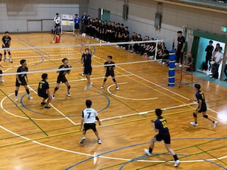 本校、男子バレーボール部が決勝トーナメントに出場し、1回戦はチームの力を結集して勝利し、2回戦では、私学の強豪校と対戦しました。