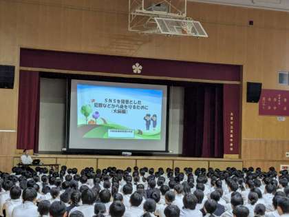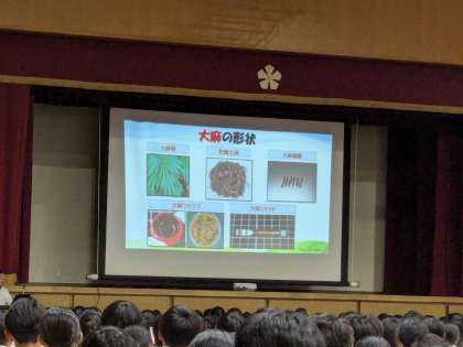本日曾根崎警察署の方に来ていただき、防犯教室を行いました。今回は「大麻」「SNSの危険性」の2つのテーマについてお話を頂きました。