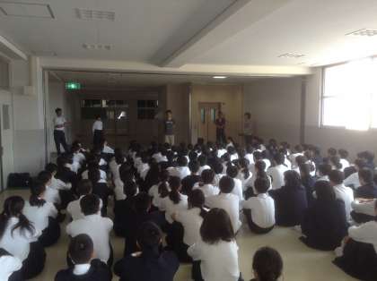 5月19日、本日は全学年、朝の学年集会です。8時20分には各学年とも集合、整列しています。今日の各学年の先生のお話は、1年生は「失敗を恐れずチャレンジ精神で行動するとは」2年生は「みんなのために何ができるか、協力とは何か」3年生は「自主性とは何か」と生徒たちに問いかけていました。この問いかけは大事ですね。問うことで考える、考えることで次は自分を表現することにつながる。この朝の学年集会は、まさに人づくりのミニ授業ですね。