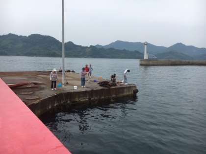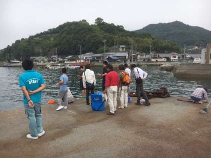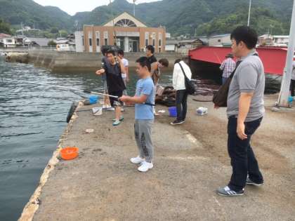 今日のお昼ご飯用の魚を自分たちでゲット!次々と魚を釣り上げています。アジ、メバル、イワシ、小鯛など