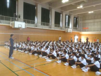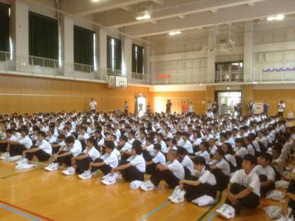 9月5日、体育館で全校集会が開催されました。校長先生からは、新聞のコラムの紹介があり「命の大切さ」についてお話がありました。また、本日は、「大阪880万人訓練」の日です。本校でも、11時の校内放送で訓練を行いました。